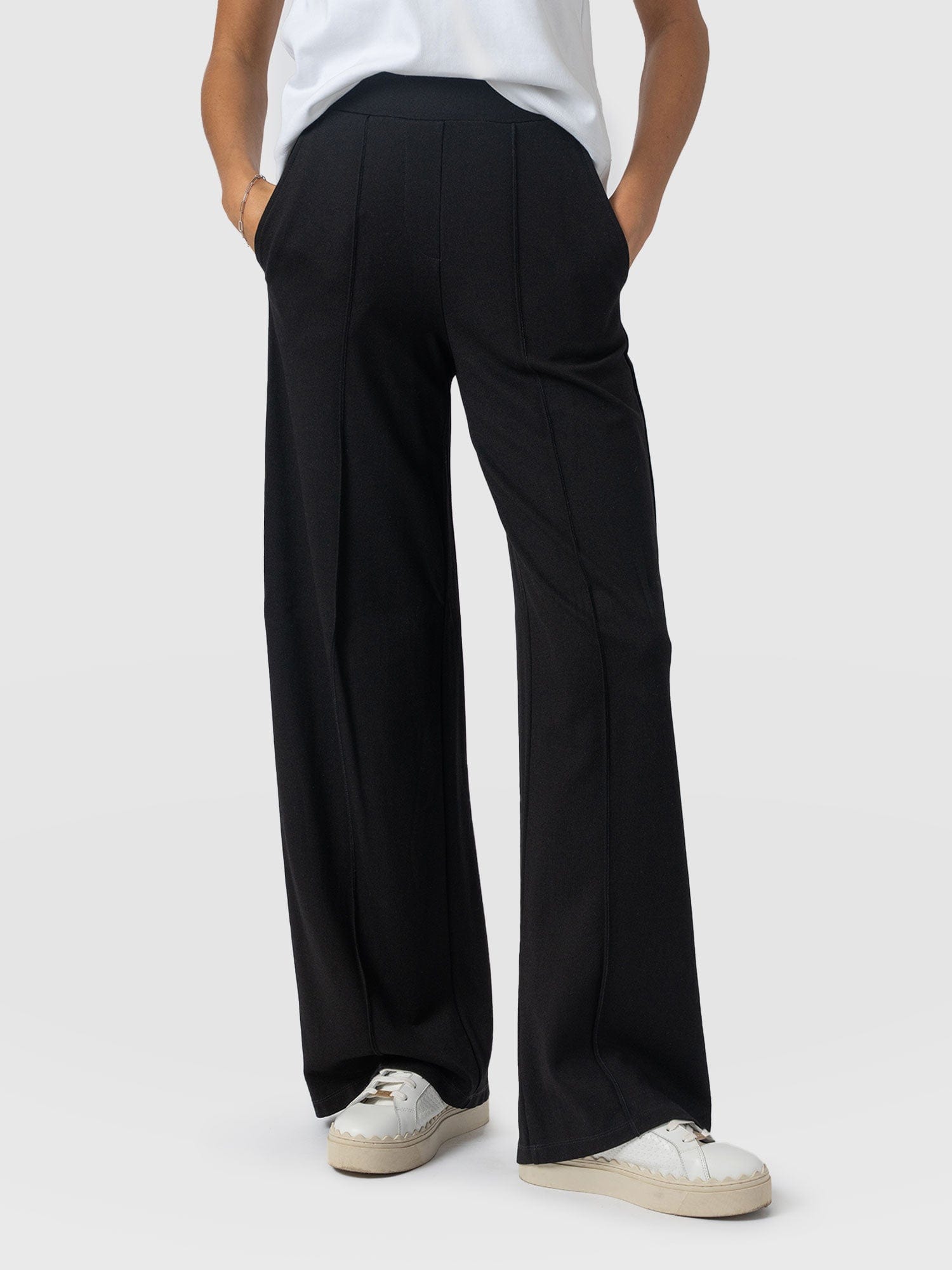 The Keller Wide Leg Pant in black is a sleek and stylish addition to your wardrobe. These wide-leg trousers feature a front pintuck and slant pockets for added detail. The flat front with elastic at the waist ensures a comfortable and flattering fit. The versatile black makes it easy to pair with any top or accessory. Whether you dress them up with heels and a blouse or keep it casual with sneakers and a t-shirt, the Keller Wide Leg Pant is perfect for any occasion.
