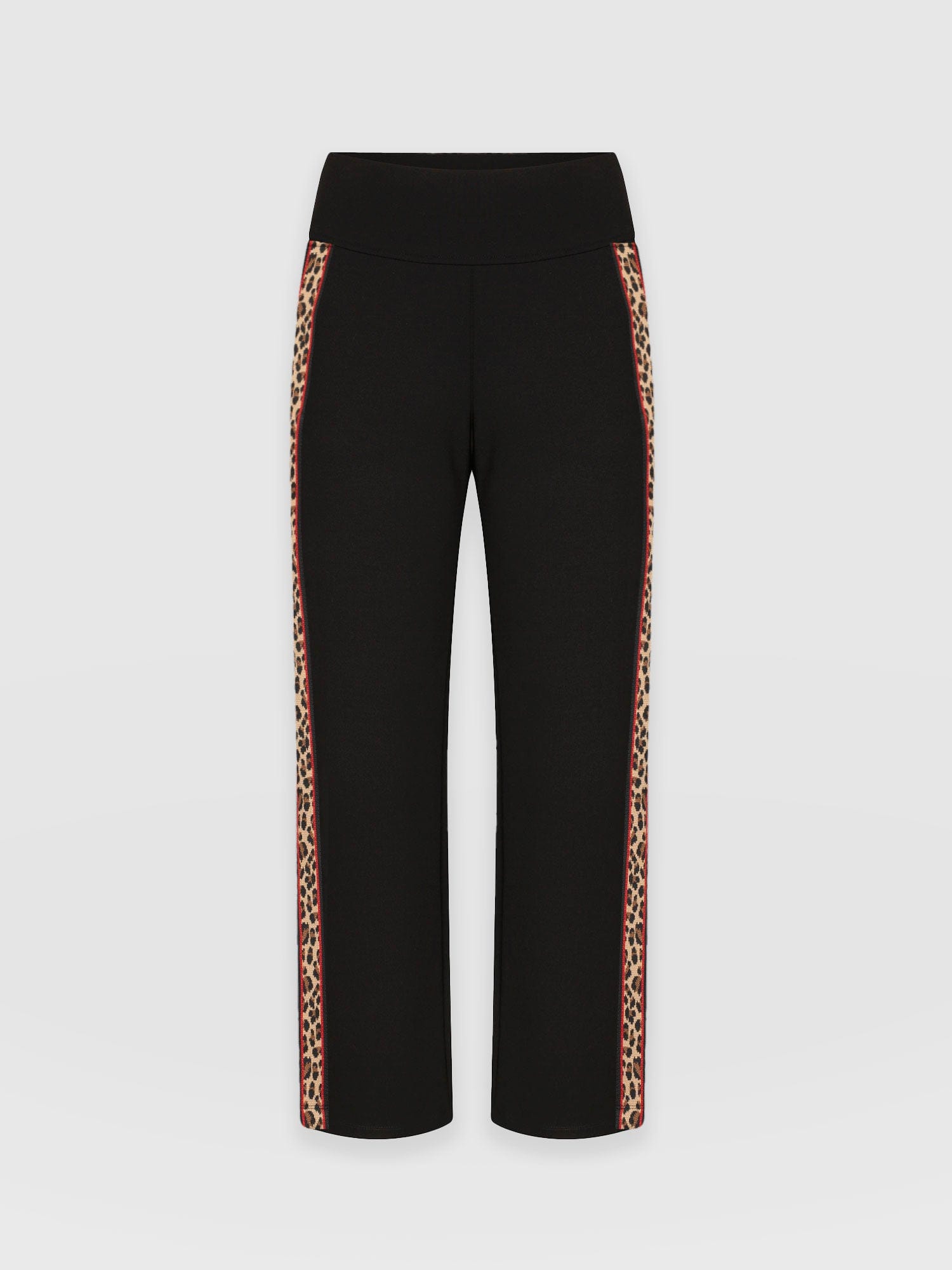 The best selling Runway Pant in black is a classic straight-leg pant style with a leopard print ribbon detail at the side. High-waisted and always in high demand, they're infused with elastane for stretch. They're smarter than jeans but comfortable like leggings. Each pair is made from soft and smooth Ponte Di Roma that has a beautiful drape and boasts a crease-free finish. Perfect for work or weekends, they pair with trainers for a casual look or with heels or boots for evening elegance.